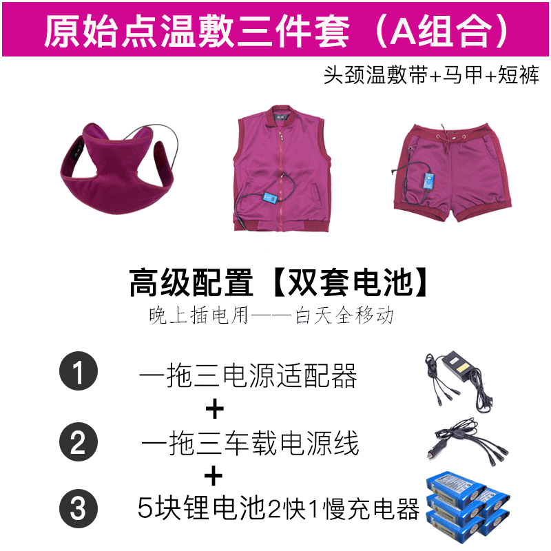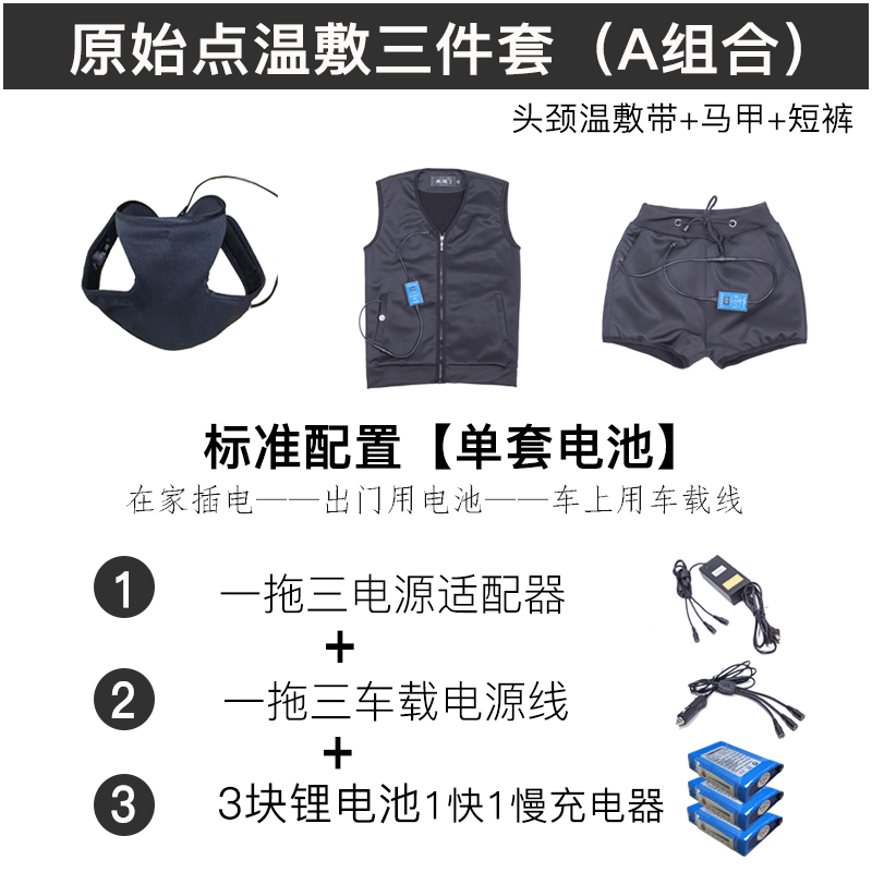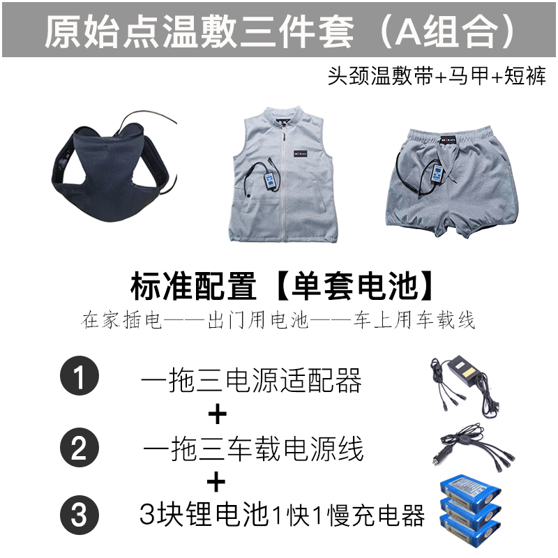 真道原始点三件套分三种组合: A组合【头颈温敷带+马甲+短裤】 B组合【帽子+马甲+短裤】 C组合【帽子+马甲+高腰短裤】