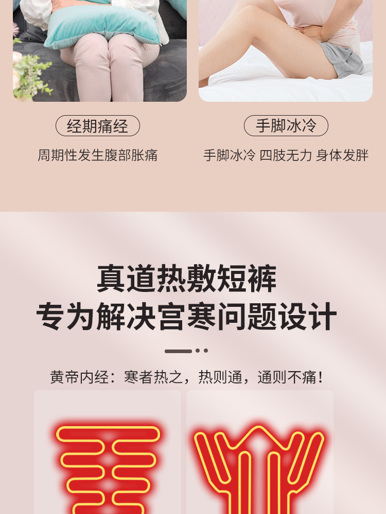 购前必读:本款长裤,热源位置与短裤完全一样,请注意热源示意图。温敷位置主要是:小腹部、会阴部、臀部原始点、荐椎原始点(八髎穴)。